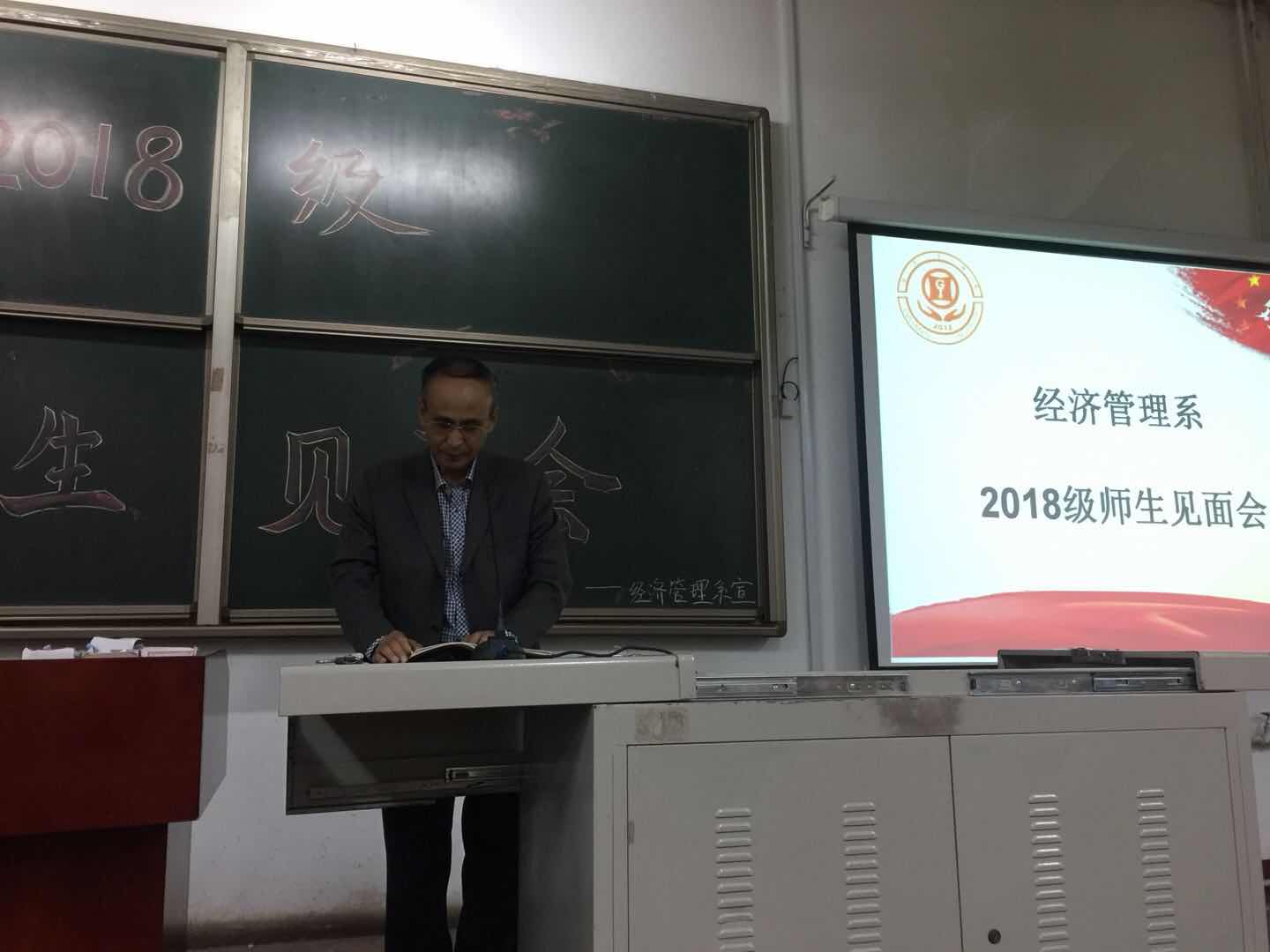 系党总支书记武虎林发表讲话,他对新生提了三点要求:即要爱国爱校,学会感恩;要励志求真;要积极参加大学生创业创新活动。