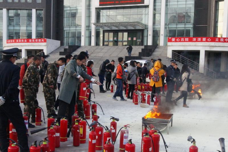 为了提高大学生的消防安全意识,增强自防自救能力,我校于2017年11月17日在图书馆前开展了“如何正确使用消防器材”的活动。参加本次活动的人员为各系各班的班长、团支书和生活委员。