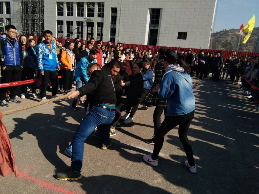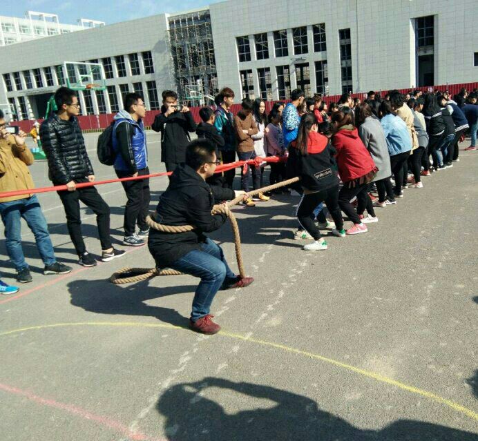 中午12:00左右,学生会成员开始布置赛场。12:40比赛正式开始,各个班的参赛者在生活部的安排下有序地在准备区集合整齐,各班代表队都展示出了最强的比赛阵容。当比赛的哨声响起,只见参赛的队员们紧握长绳,卯足了劲儿拼命往后拉!各班辅导员也在队伍旁边助阵!未参赛的同学自发组成拉拉队为比赛队员呐喊加油,哨子声、呐喊声此起彼伏,现场激烈的比赛将整个活动推到了高潮!比赛过程中,各班参赛队员努力拼搏,无论是场上还是场下,气氛都非常热烈。现场拉拉队的队员个个热情高涨,纷纷呐喊助威为比赛增添了一抹亮色,他们的每一声呐喊都为参赛人员带来了一股力量!