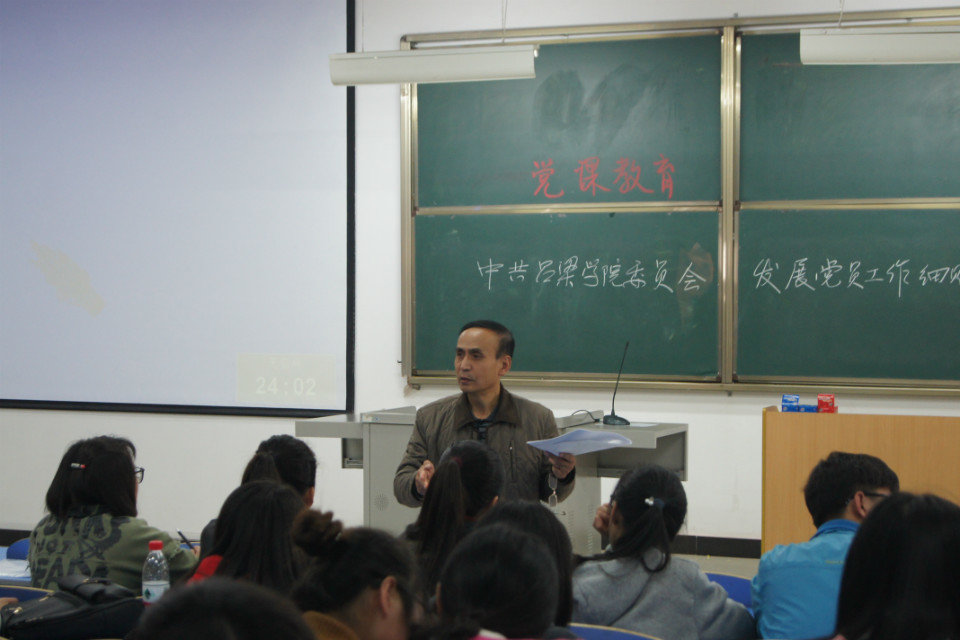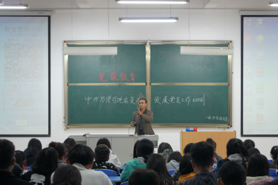 为了进一步规范学校发展党员工作,保持党的先进性和纯洁性,全面提高学校党的建设科学化水平,太阳集团tyc33455于2017年11月4日下午3:30–5:00在综B阶301教室进行了主题为"中国共产党太阳集团委员会发展党员工作细则"的党课教育讲座。本次讲座由太阳集团tyc33455党总支书记武虎林主持,参会人员为全体15级、16级入党积极分子。