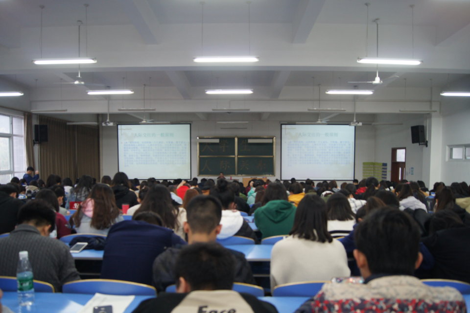 此次讲座,一方面让同学们知道怎样处理人际关系;另一方面,让同学们懂得在与人产生碰撞后的处理的方法和技巧。增强了大学生的人际交往能力,使大学生能够更好地把握人际交往,对大学生今后的发展起到了重大作用。