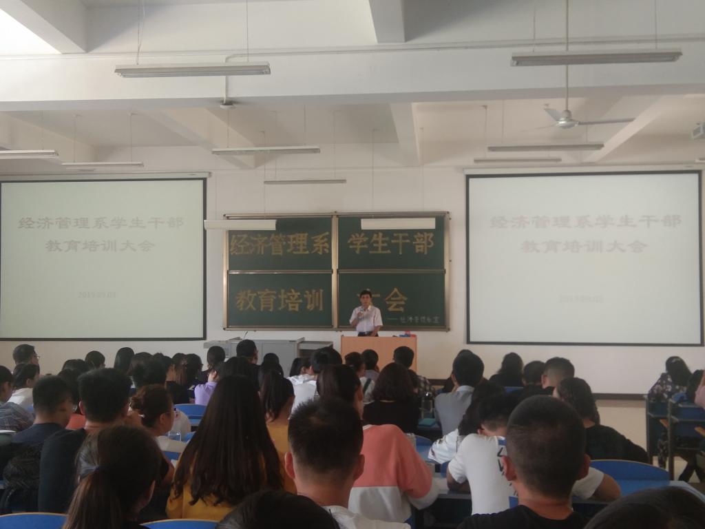 2019年9月3日下午4时40分,太阳集团tyc33455在综B阶201室召开学生干部教育培训大会。系党总支书记武虎林主持会议,主任、副书记出席并讲话。全体班主任、辅导员,16、17、18级各班班长、团支书、学习委员和生活委员,系学生会各部部长、副部参加了本次会议。