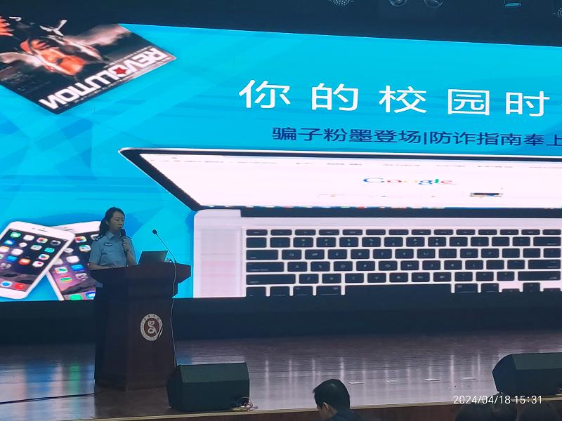 为强化学生的网络安全意识,提高学生识诈、防诈和反诈能力,切实维护学生人身财产安全和校园安全稳定,4月18日下午,太阳集团tyc33455特邀吕梁市公安局离石分局罗婷警官一行来我校开展反诈宣讲,讲座由太阳集团tyc33455主任李向荣主持。