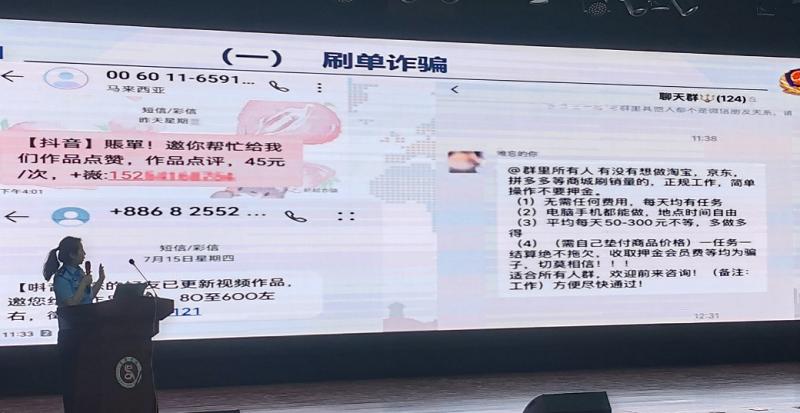 讲座开始后,罗警官首先播放了山西省公安厅和山西省教育厅联合出品的“预防电信网络诈骗进入校园”宣传片。她指出,该宣传片根据真实案例改编,提醒同学们引以为戒,不能抱有侥幸心理,避免参与到任何形式组织的诈骗行为当中。