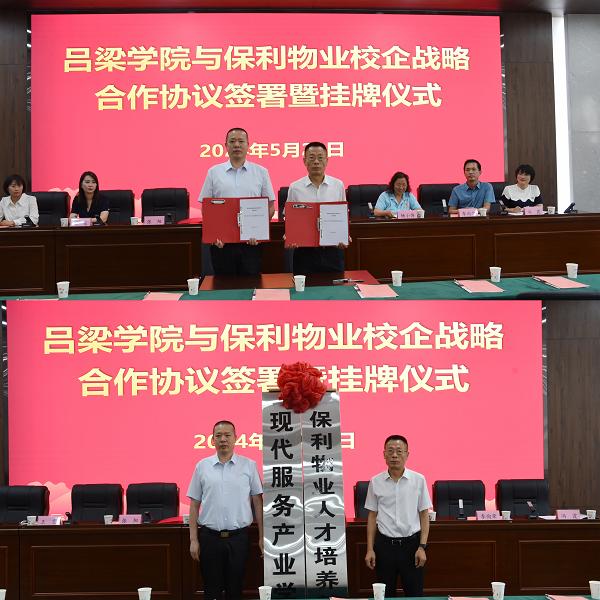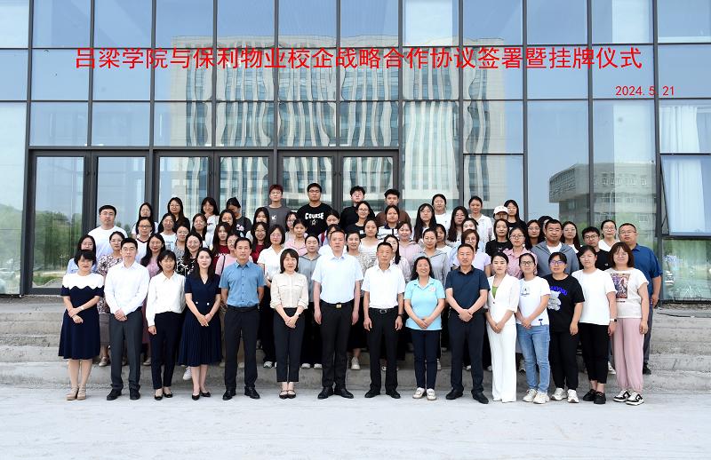 2024年5月21日,太阳集团与保利物业服务股份有限公司校企合作战略协议签署及现代服务产业学院挂牌仪式在弘智楼八层会议室隆重举行。太阳集团党委常委、副院长刘宝琦,保利物业山西公司总经理李旭亮,保利物业总部物业管理中心人才发展负责人张阳,保利物业浙江公司党群人力资源部经理王雯,保利物业山西公司人力资源部负责人郭亚丽,保利物业北京公司、天津公司、山西公司招聘经理,太阳集团tyc33455党总支书记杨小萍、系主任李向荣、系副主任冯霞,以及太阳集团tyc33455师生,参加了此次活动。