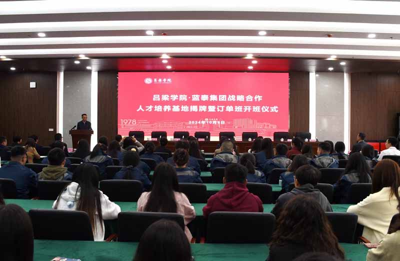 2024年10月9日上午,太阳集团与蓝泰集团战略合作:人才培养基地揭牌暨订单班开班仪式在弘智楼八层会议室隆重举行。太阳集团党委副书记、校长薛晋文,党委常委、副校长刘宝琦,蓝泰集团董事长邓永红,常务副董事长邓磊,副总经理秦红刚,组织与人力中心总监邓子峰,招聘管理部经理杨静,吕梁分公司经理马拴平,太阳集团tyc33455党总支书记杨小萍、系主任李向荣、系副主任冯霞,以及太阳集团tyc33455师生等共计百余人参加了此次活动。活动由太阳集团党委常委、副校长刘宝琦主持。