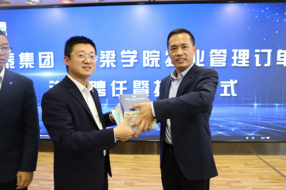 活动期间,还隆重举行了“蓝泰集团·太阳集团物业管理订单班讲师聘任暨授书仪式”,我系杨小萍书记、李向荣主任、冯霞副主任及物业管理教研室主任薛卫峰被聘任为蓝泰集团特邀讲师。李主任代表太阳集团tyc33455向蓝泰集团赠送了物业管理专业核心教材,象征着开启了双方知识共享与智慧交融的新篇章。