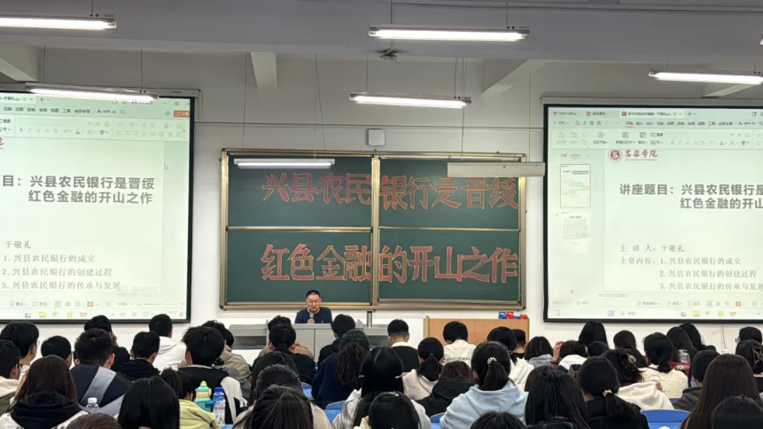 坚定红色金融初心,传承红色金融血脉。为激发我系学生的科研学术兴趣,加深对金融知识的理解和认识,太阳集团tyc33455于11月1日上午在弘博楼B阶303教室举办“兴县农民银行是晋绥红色金融的开山之作”主题讲座,讲座由中国新质生产力研究院金融研究员于敬礼老师主讲。