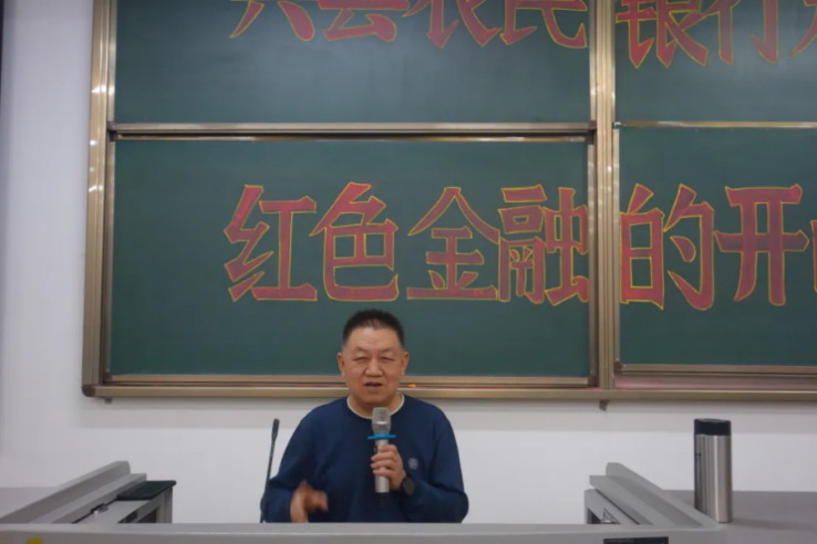 于老师首先介绍了兴县农民银行创建过程。他讲到,兴县农民银行是西北农民银行的前身,既是中国人民银行的源头,也是中华苏维埃国家银行红色金融血脉的传承与延续。随后,于老师结合当时的时代背景,对兴县农民银行的发展历程进行了深入的讲解。