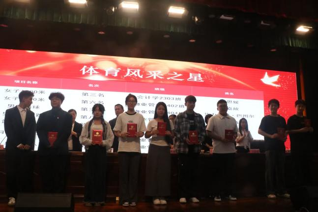 对 2024-2025 学年在各领域表现突出的集体与个人进行表彰。本次共颁发 “科技创新之星”“职业规划之星”“体育风采之星”“组织奉献之星” 等多个奖项,系领导为获奖代表逐一颁奖,台下掌声、欢呼声此起彼伏,每一份荣誉都成为激励在场师生奋勇争先的动力。