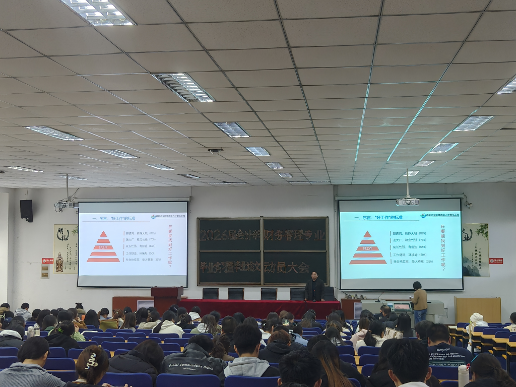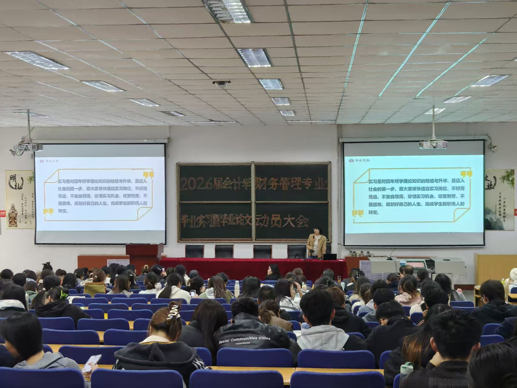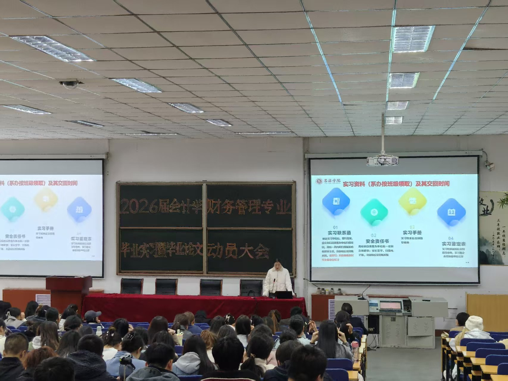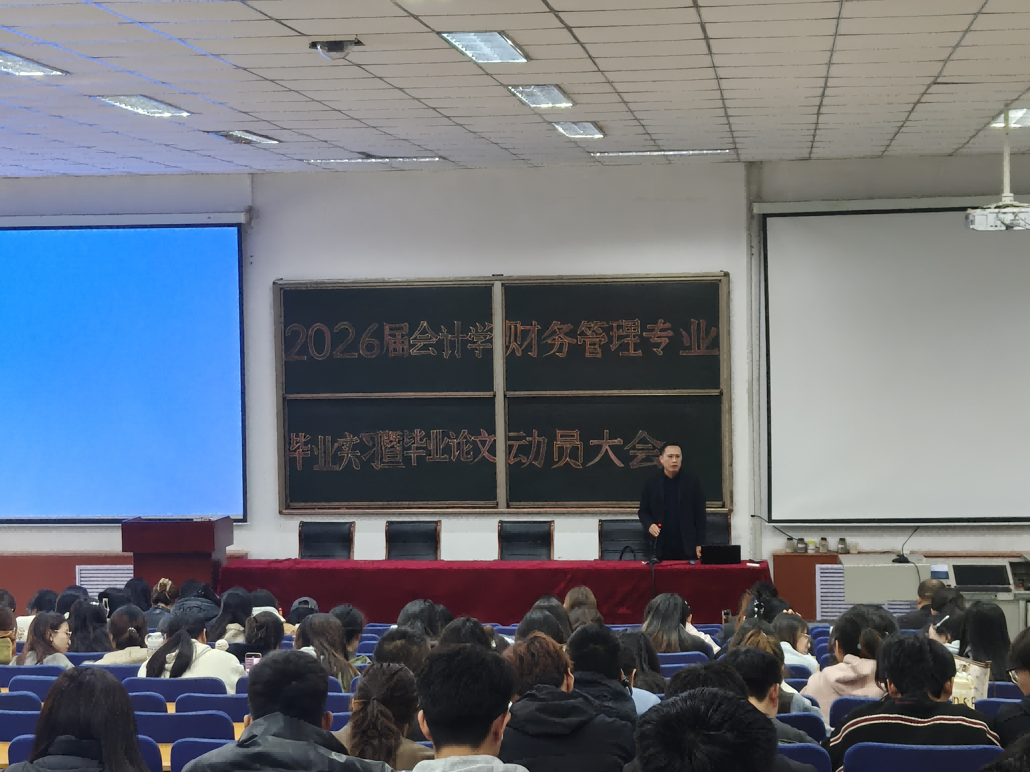 此次动员会的召开,让 2026 届会计学、财务管理专业学生明确了毕业实习与毕业论文的相关要求和任务,增强了学生的安全意识与责任意识,为后续毕业实习与毕业论文工作的顺利开展奠定了良好基础。