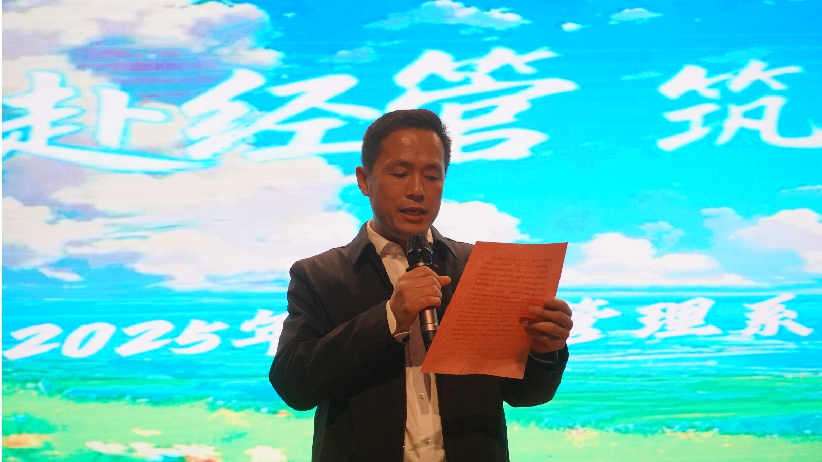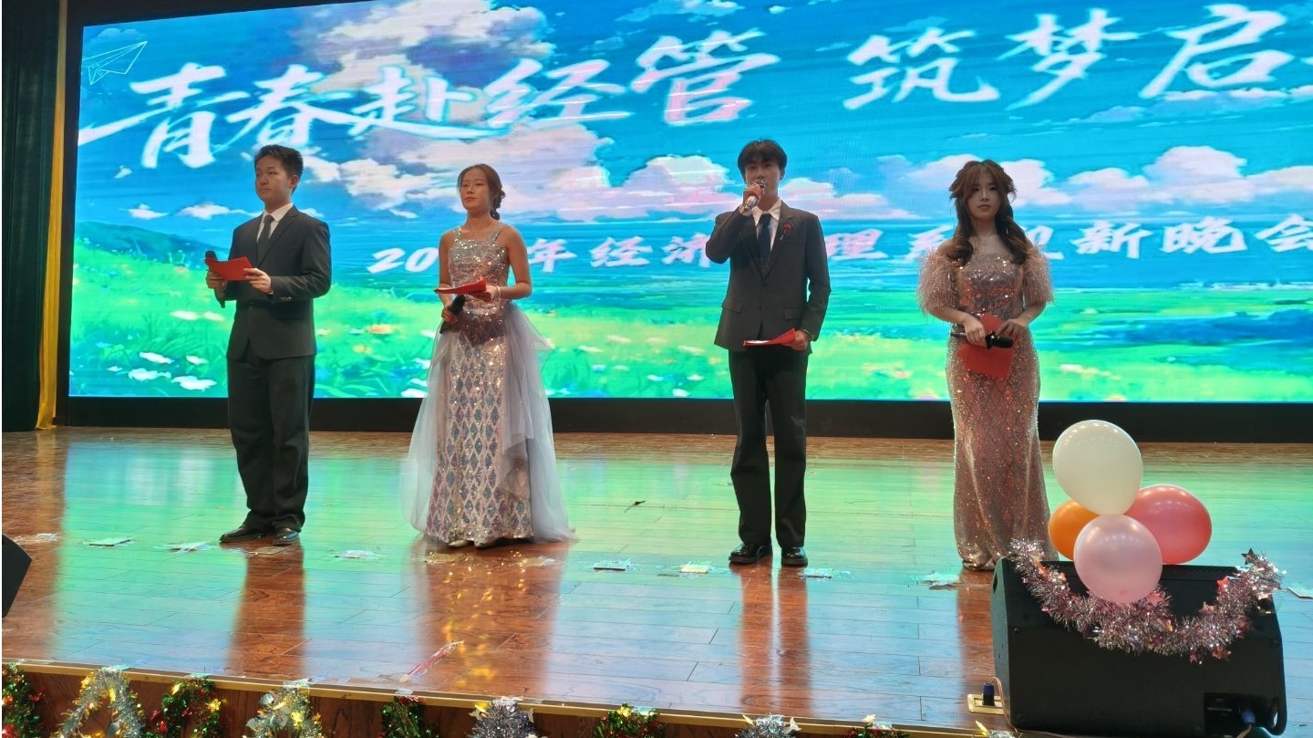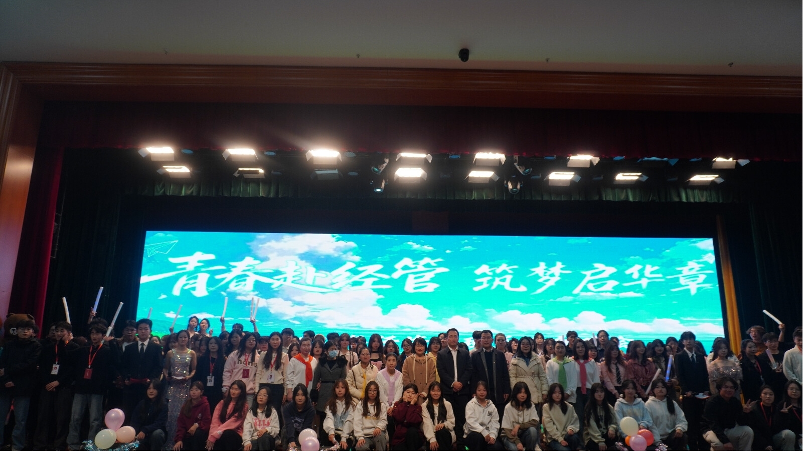 2025年11月29日晚,太阳集团tyc33455“青春赴经管,筑梦启华章”2025级迎新晚会在弘智楼报告厅盛大举行。系主任李向荣、党总支副书记武国兴等领导及各专业教师代表出席,与全体新生共赴这场青春之约。