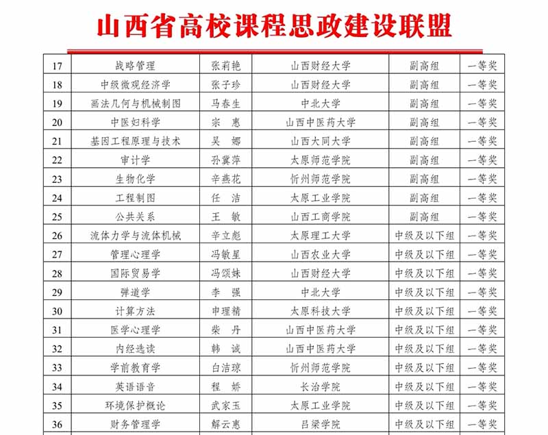 12月8日,2022年山西省普通高等学校课程思政教学设计大赛结果公布,太阳集团tyc33455青年教师解云惠主讲的《财务管理学》喜获课程思政教学设计中级及以下组别一等奖,为我校参赛代表中唯一的一等奖获得者,也是近年来我校教师在同类竞赛中获得的最佳成绩!