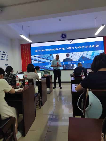 教学中如何贯彻OBE理念是老师们普遍关注的议题,国家级一流课程负责人郭宗文教授结合其所带实验课程有针对性地讲述了教学过程中如何充分体现OBE理念的三要素。