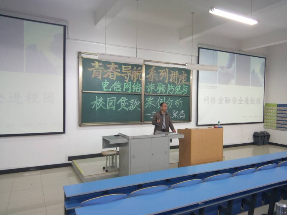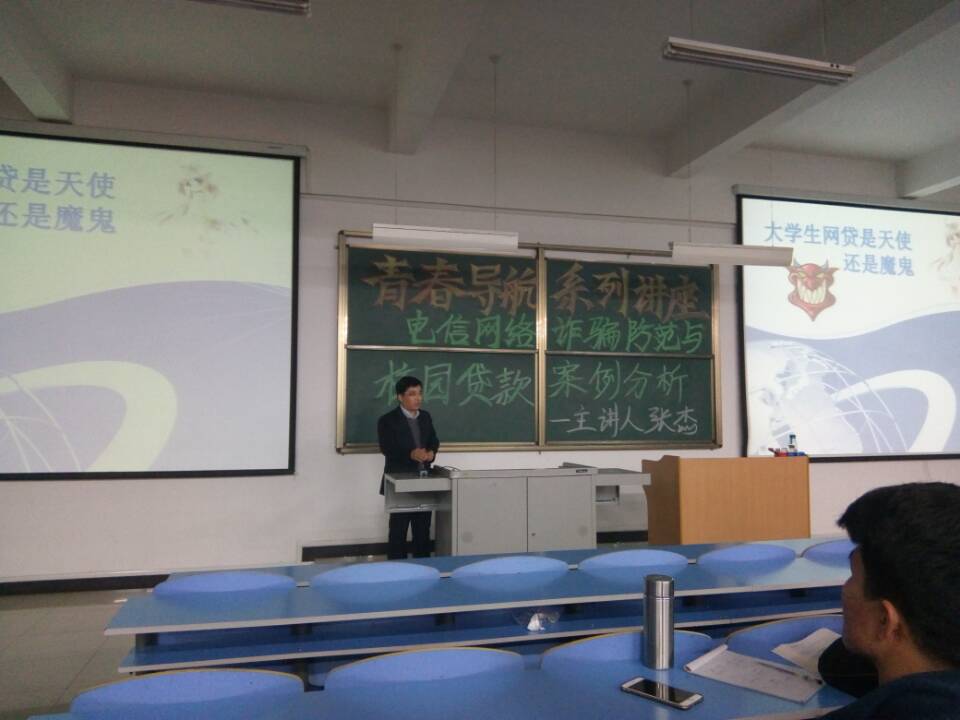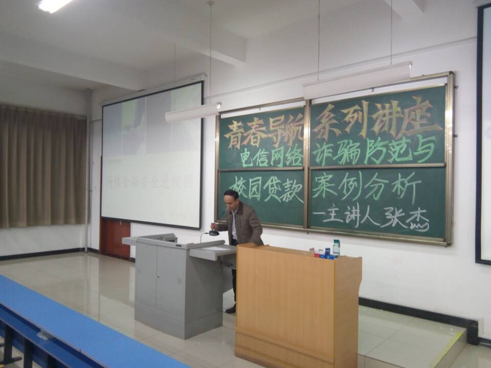 为了增强大学生电信、网络安全意识,提高大学生识别电信诈骗、网络诈骗的能力,避免学生财产安全受到侵害。我系于3月9日19:30邀请中国建设银行吕梁分行网络金融部的张杰总经理为学生在综B阶303举行了一场电信网络诈骗与校园贷款的专题讲座。