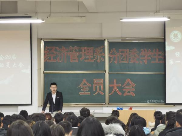 会上,贾天圆老师首先对学生会新成员的到来表示欢迎,并对分团委、学生会内涵建设提出了更高要求,希望大家明确分团委、学生会的宗旨目标,永葆理想主义情怀,做好学生本分,起好带头作用。主席团代表范世龙强调了组织的群众性、奉献性和服务性,希望大家提高对自身能力的培养意识。同时,要求同学们端正学习态度,在期末考试中发挥带头表率作用,诚信考试,杜绝作弊。随后,各部部长就本年度工作成果、经验与不足和下一年度工作计划逐一汇报。