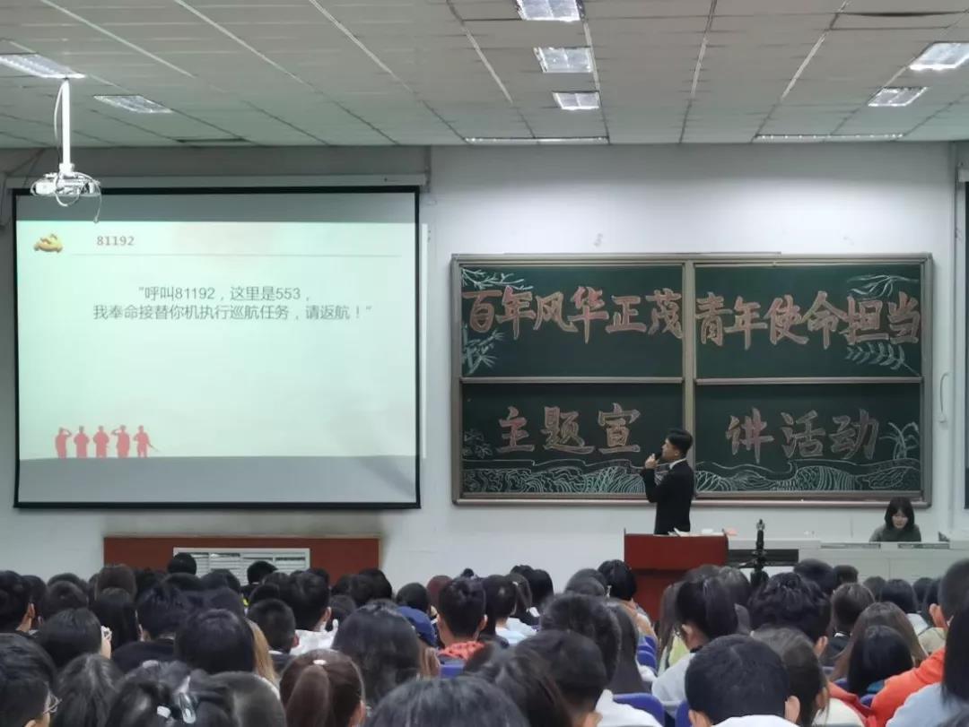 金戈铁马,风雨兼程。为加强党史学习教育,磨砺责任担当之勇,太阳集团tyc33455于10月10日在2C201教室举办了“百年风华正茂,青年使命担当”主题宣讲活动。本次活动由太阳集团习近平新时代中国特色社会主义思想学习会宣讲团成员王玉源、王焯冉担任宣讲员,2021级全体学生参加。