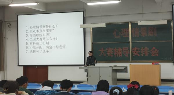 陈浠老师结合去年在中南大学举办的“第三届全国高校心理情景剧大赛决赛”,为同学们梳理了“什么是心理情景剧”、“它的重点难点在哪里”、“需要准备哪些东西”、“全国大赛是什么样”等一系列问题,帮助参赛同学更加深入地了解了心理情景剧的比赛规则、流程及必要的赛前准备,缓解了同学们对于比赛的紧张感。随后,陈浠老师对参赛人员进行小组划分,并确定指导老师,明确比赛应提交的相关材料以及截止日期。希望同学们积极准备,全力应战,期待大家的精彩表现!