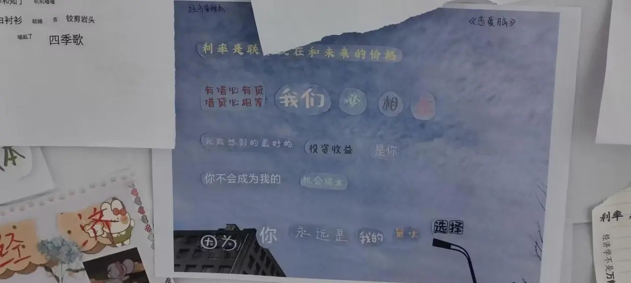 拼贴诗作为一种“无厘头”的浪漫,让我们在匆忙的生活中拼接浪漫与诗意。在拼贴诗创作中,经管学子或融合学科理解或表达生活感悟,用来自教材和书本的词句,谱写出一篇篇经济学诗歌,这是独属于经管人的浪漫。