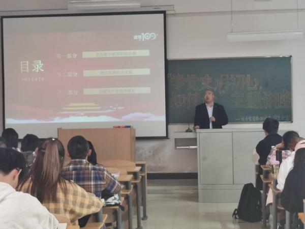 全面开展党史学习教育,是不忘初心使命、推进中华民族伟大复兴历史伟业的必然要求,是坚定信仰信念、在新时代坚持和发展中国特色社会主义的必然要求,是推进党的自我革命、永葆党的生机活力的必然要求。党的历史是最主动、最有说服力的教科书,赵东旭鼓励同学们经常回头看,重新感受自己进入大学的初心、感受当初提笔写下入党申请书时的那份拳拳赤子之心。他勉励广大的青年学子要树立正确的党史观,从党的历史中汲取丰富的营养,发扬红色传统、传承红色基因,赓续共产党人精神血脉,鼓起迈进新征程、奋进新时代的精气神,为奋力开启全面建设社会主义现代化国家新征程添砖加瓦。